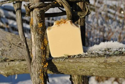 Solsikka är ringblomma på gutamål. Ringblomman är en gammal läkeväxt som sägs ha många goda egenskaper. Jag har haft så mycket ringblommor jag bara kan i Solsikka, och det blev en snäll och mild tvål. Ringblommorna odlar jag själv, i min trädgård – där de pollineras av mina bin.